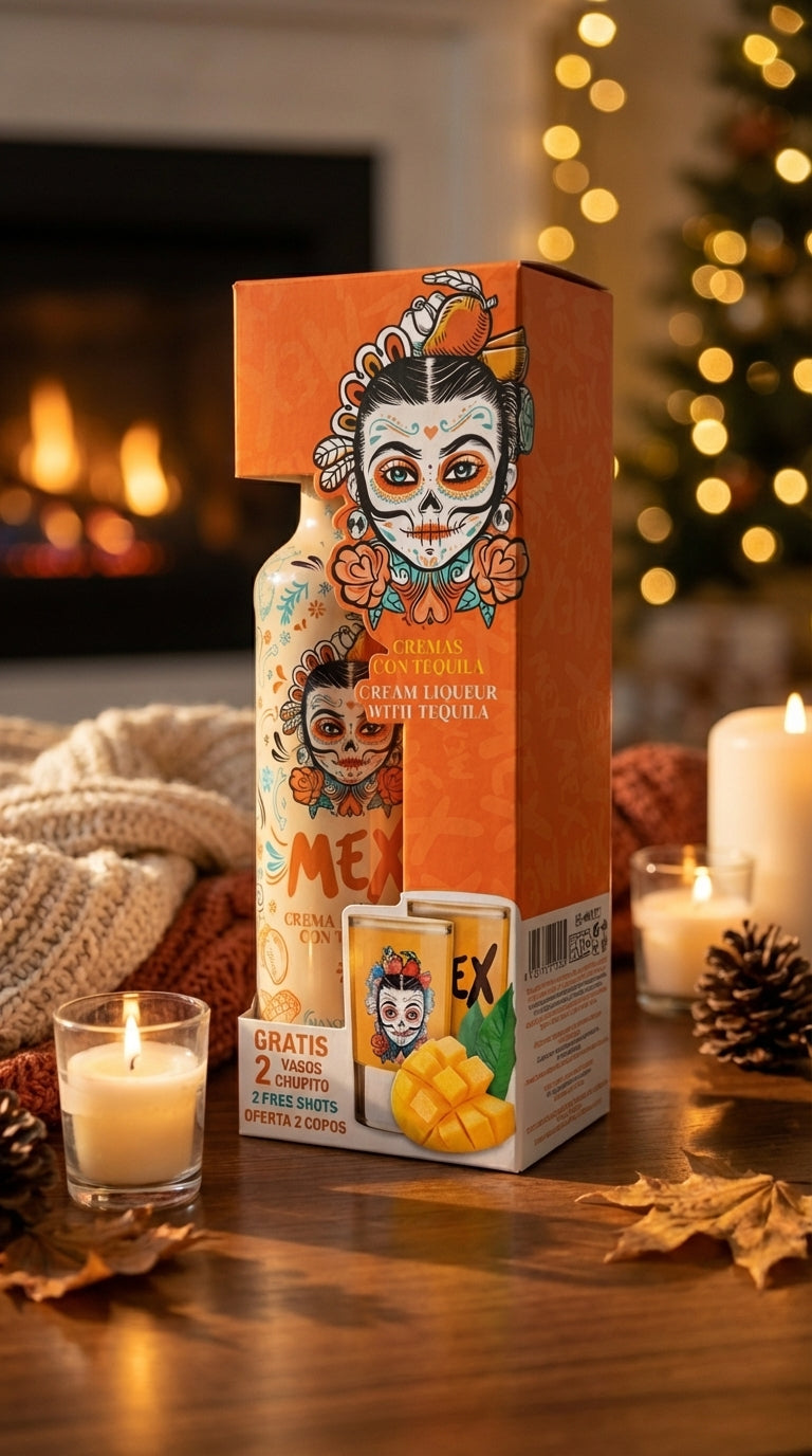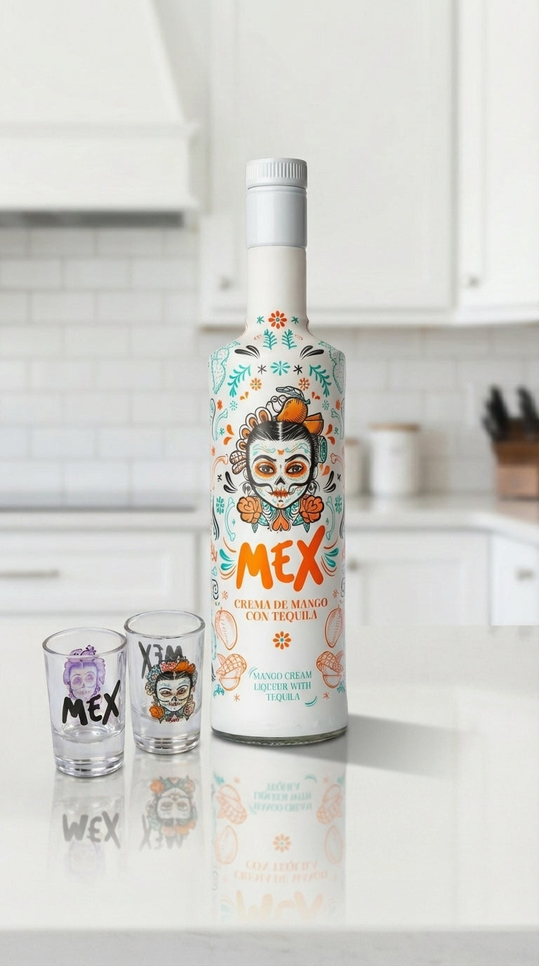 PACK GARRAFA + 2 Copos Shot - BEBIDA COM TEQUILA - MEX CREAM MANGA 70cl